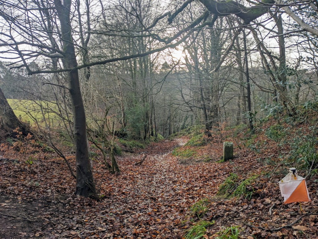 The Gelt Woods event, postponed from last month by Storm Darragh, took place on Saturday 4th January in calm but cold weather. The officials at any event deserve appreciation, but even more so here where a lot of the work had to be done twice. For instance all the controls had already been put out and checked by the time the first attempt was cancelled. So many thank you to Stella (organiser), Andy (controller), Charles (planner) and Paul (assistant controller and control hanger)