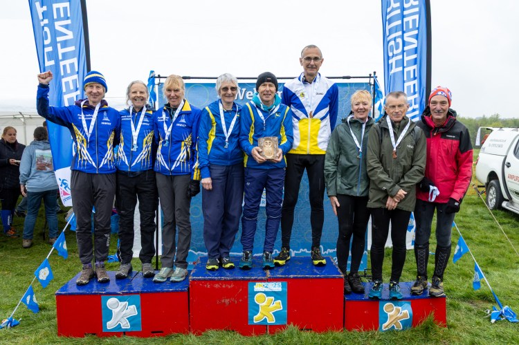 Such was the situation in the Ultravets M/W 210+ class where BL had 3 teams. A quick calculation suggests that there are over a hundred thousand permutations of 9 people into three teams (though admittedly some of them wouldn’t make the 210 age total) . So team manager Andy did well to create a medal winning team, with Keith, Christine and him coming third. The second team was close behind in fifth place, and the third unfortunately had a mis-punch, but would otherwise have been well placed.