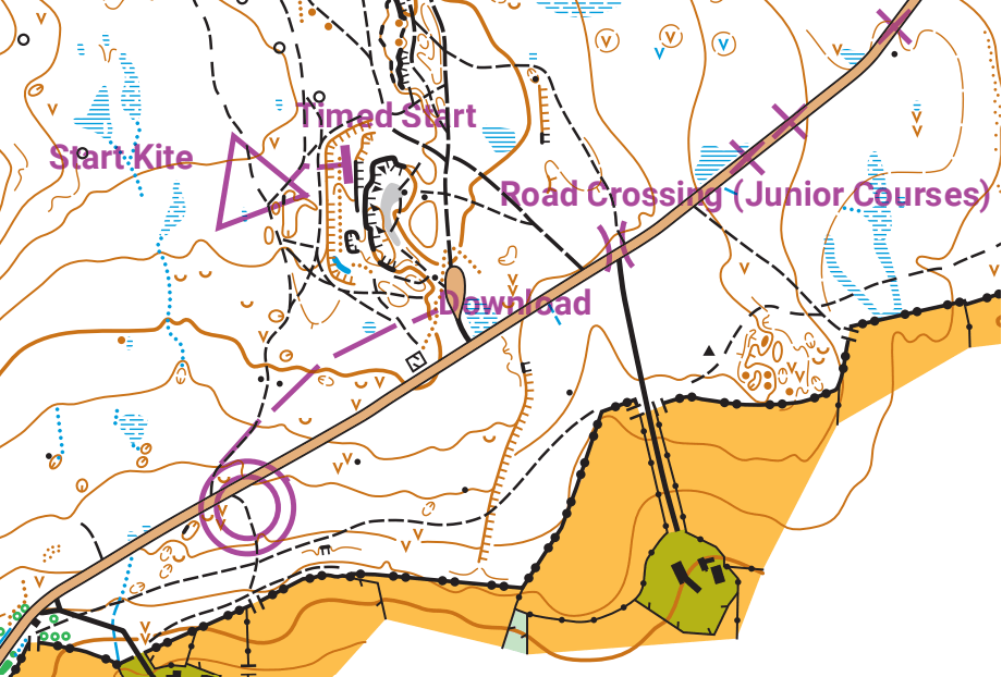 - All courses cross the road which can be very busy and cars often travel fast, so take care at all times – only the Yellow, Orange and Short Green have a manned crossing point
